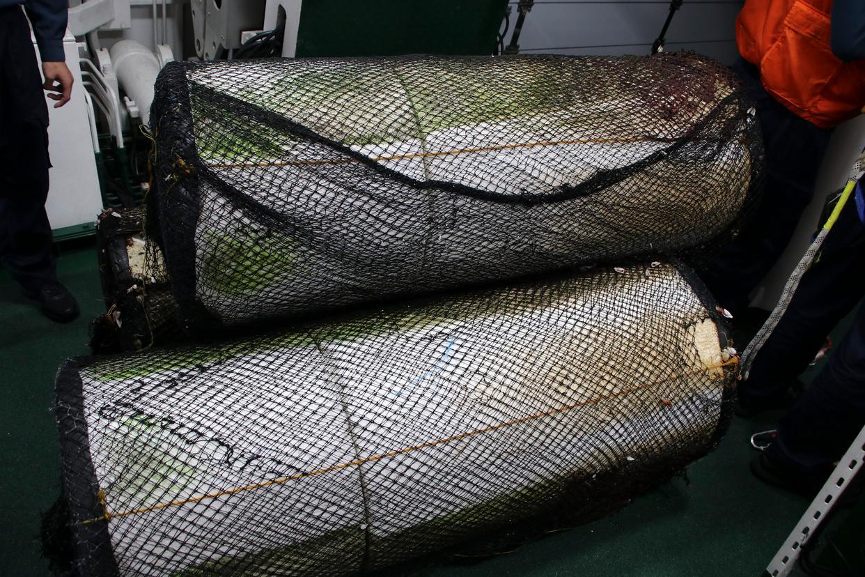 这是海警浮鹰舰执法员在中国南沙仙宾礁附近海域依法拆除的集鱼装置(1月12日摄)。新华社记者 赵文轩 摄