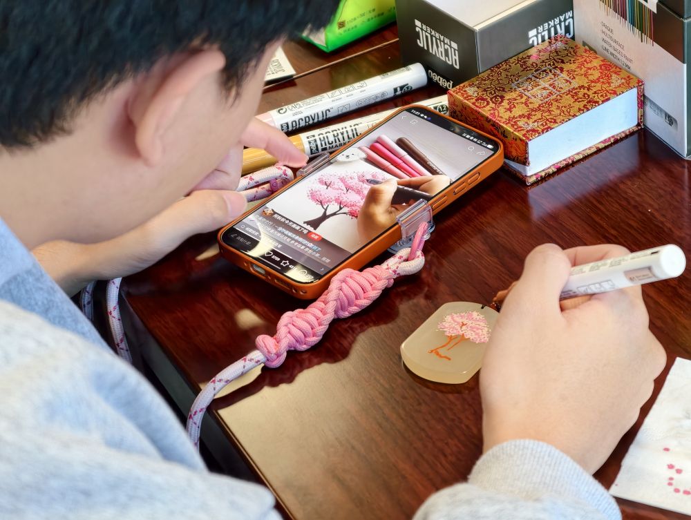 “葡萄特别甜,这是我对新疆的感知。”徐同学在金丝玉上画了“一串晶莹圆润的葡萄”。他看着作品满脸自豪,“我相信多年后再看到这块玉,我依然会清晰想起曾在新疆的印记。”