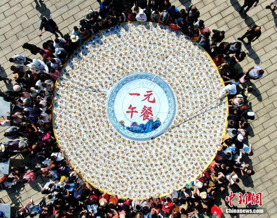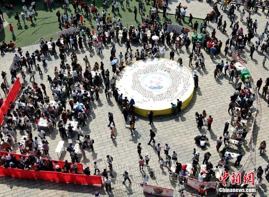 高处俯瞰“一元午餐”现场,人头攒动。王中举 摄