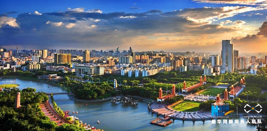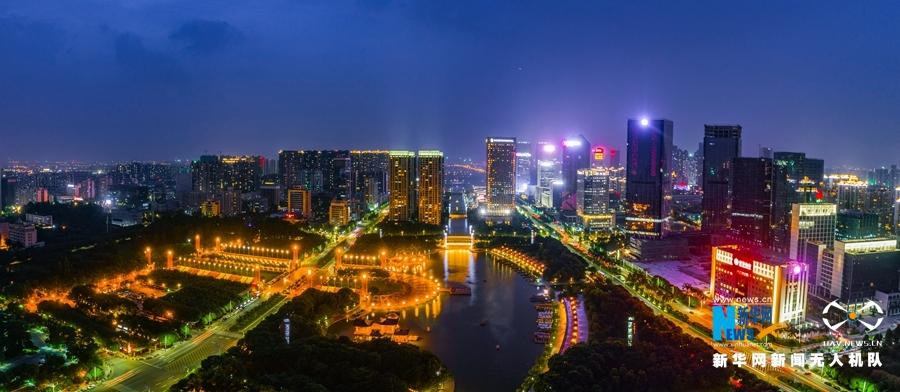 航拍佛山千灯湖 千灯盛放竞妖娆