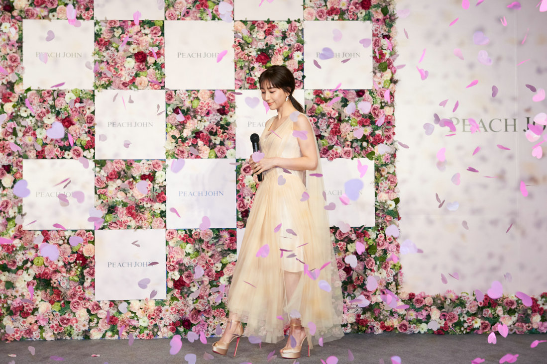 在本次发布会中,PEACH JOHN蜜桃派的新代言人(缪斯)・田中美奈实亮相,介绍了作为新缪斯的干劲、美胸塑形的秘诀、选择内衣的讲究、“理想的女性形象”等。关于胸部护理的秘诀,她评述说 “连胸部一起被认为是脸一样精致保养,所以在进行皮肤管理时,头部、肩颈、胸部都会一系列地进行护理”。另外,关于田中美奈实所描绘的“理想女性的形象”,她表示“希望身心健康,精神饱满,展现自己快乐性感的样子就好。”