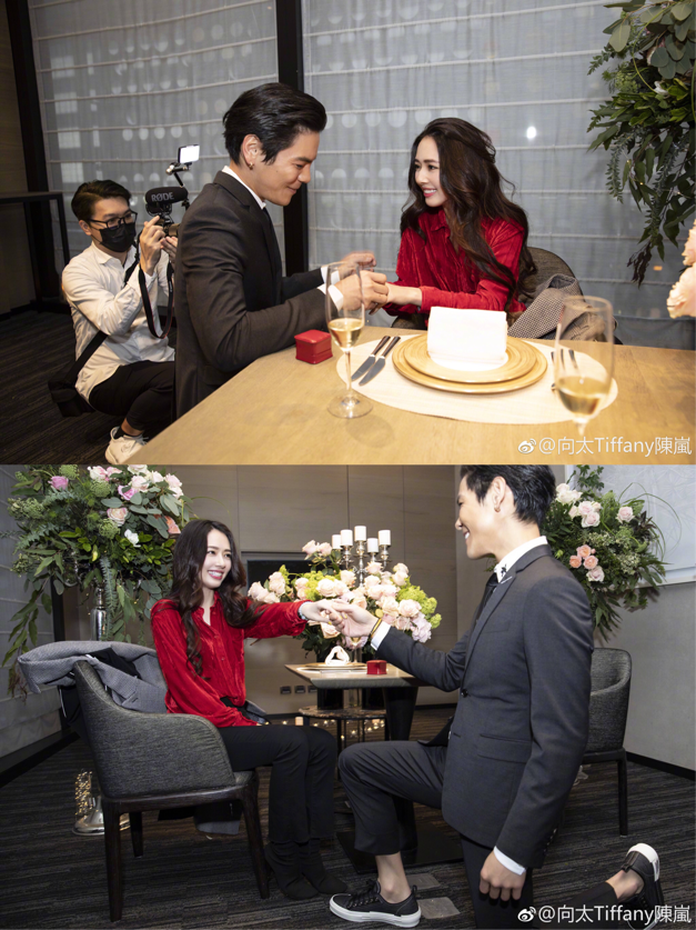 向太陈岚率先发微博透露出向佐向郭碧婷求婚成功的喜讯。提到向佐是在3月17日下午5:20分向郭碧婷求婚。并Po出了求婚仪式的现场图。
