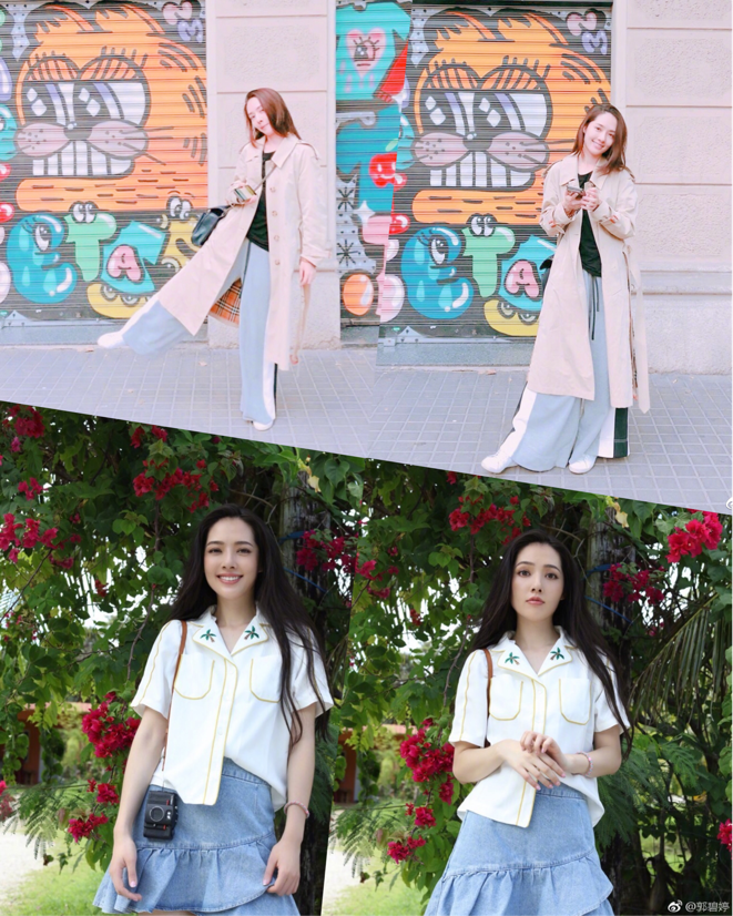 还有这种最适合她的温柔风,宽松的阔腿裤和牛仔短裙让她看起来就像邻家女孩,既温柔又可爱,值得一试~