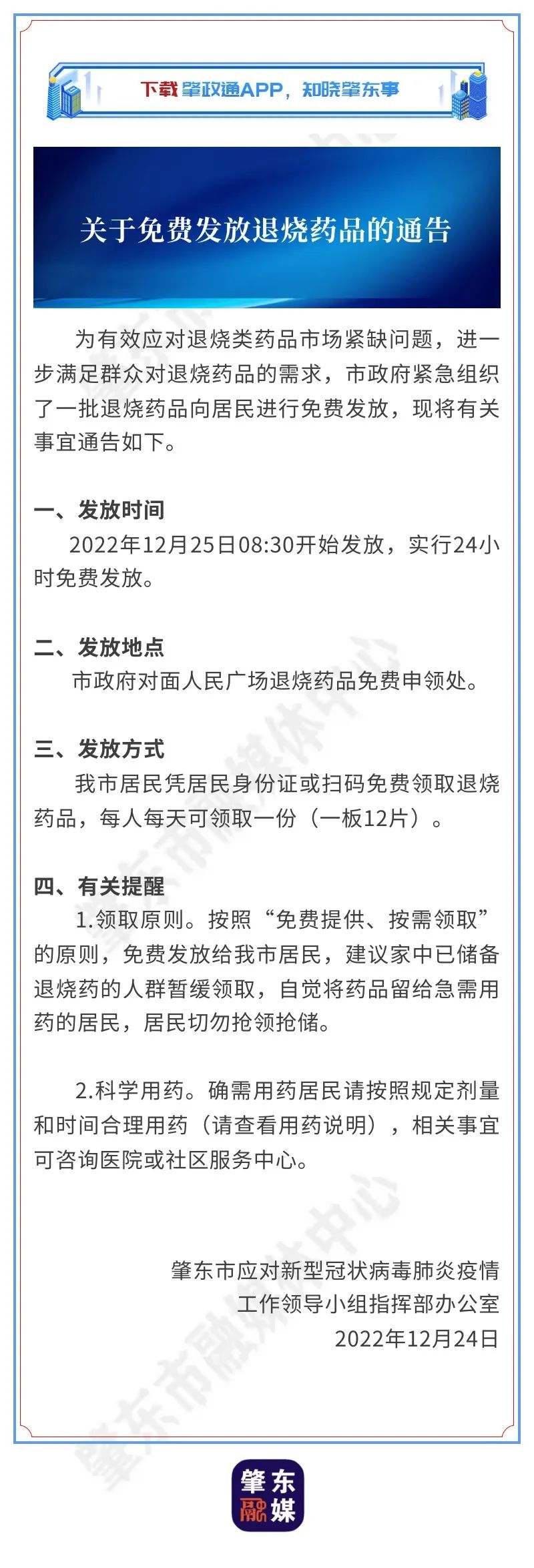 黑龙江肇东市:关于免费发放退烧药品的通告