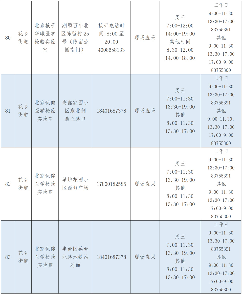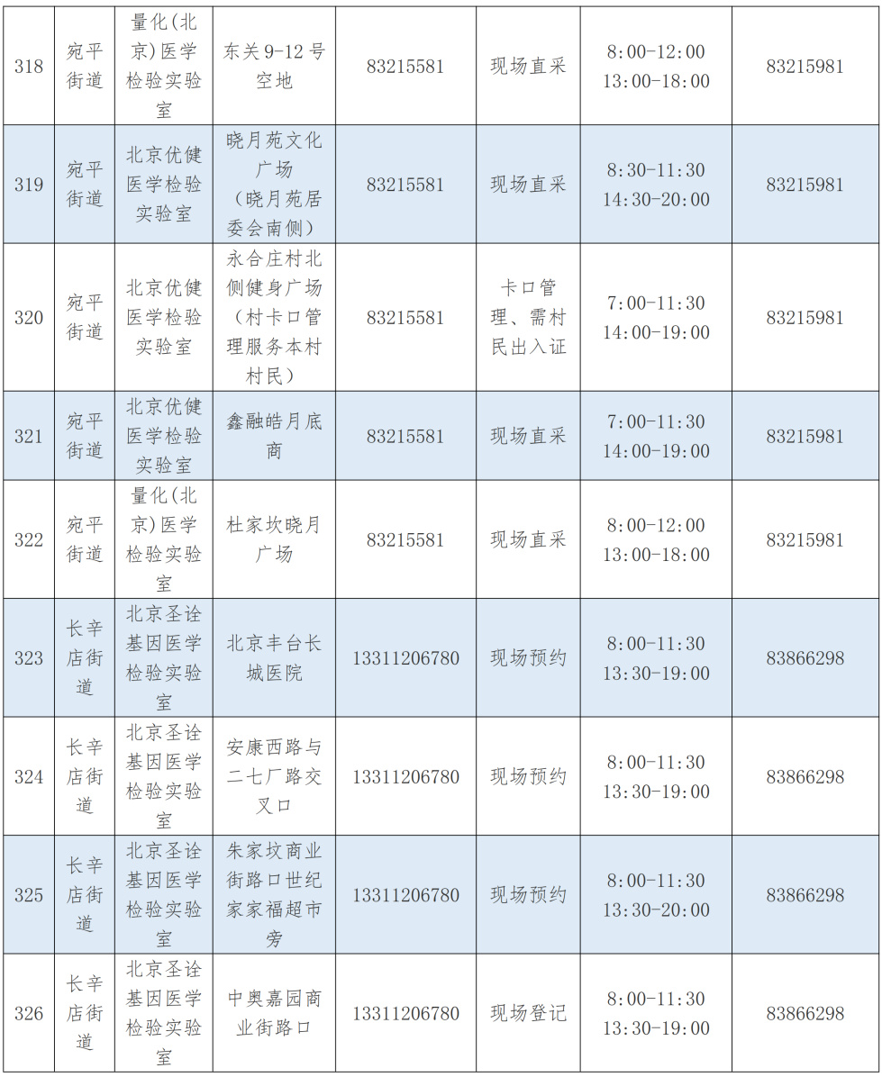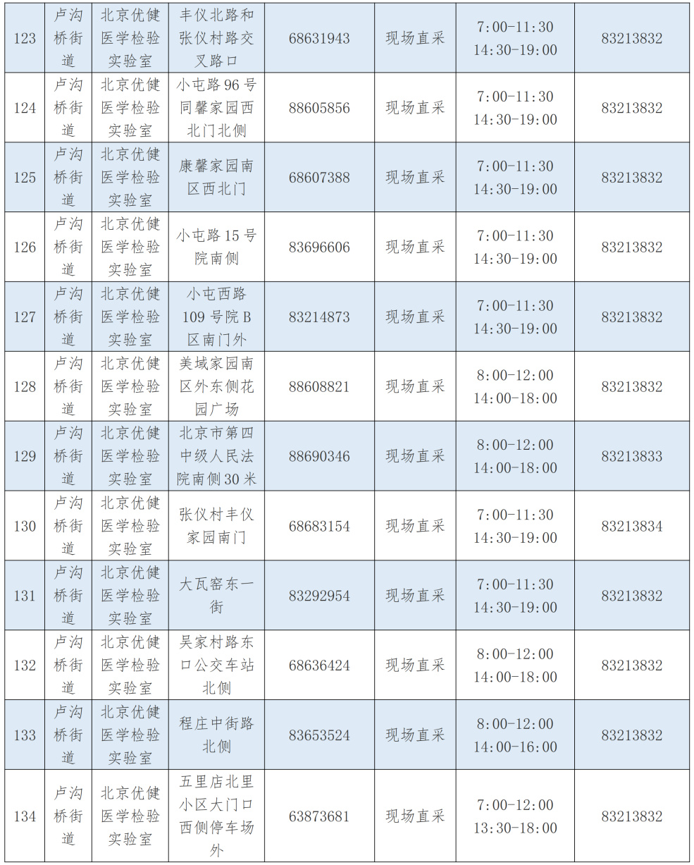 为优化常态化核酸采样点位布局,积极构建15分钟核酸采样圈,方便群众就近就便选择检测地点,近日,丰台区对常态化核酸采样点位设置进行优化调整。调整后,全区共设常态化核酸采样点373个,临时采样点108个,现将点位信息公布如下: