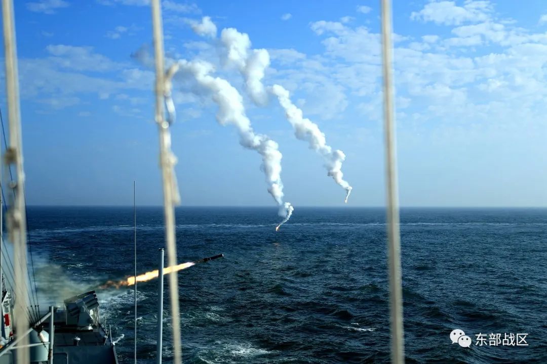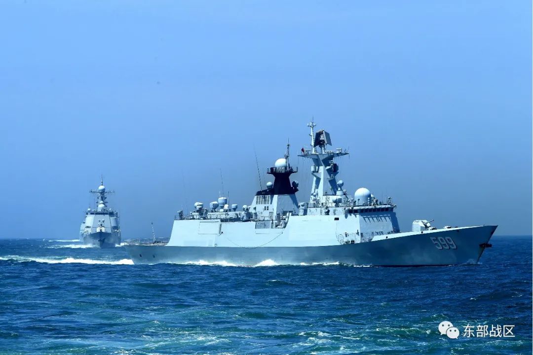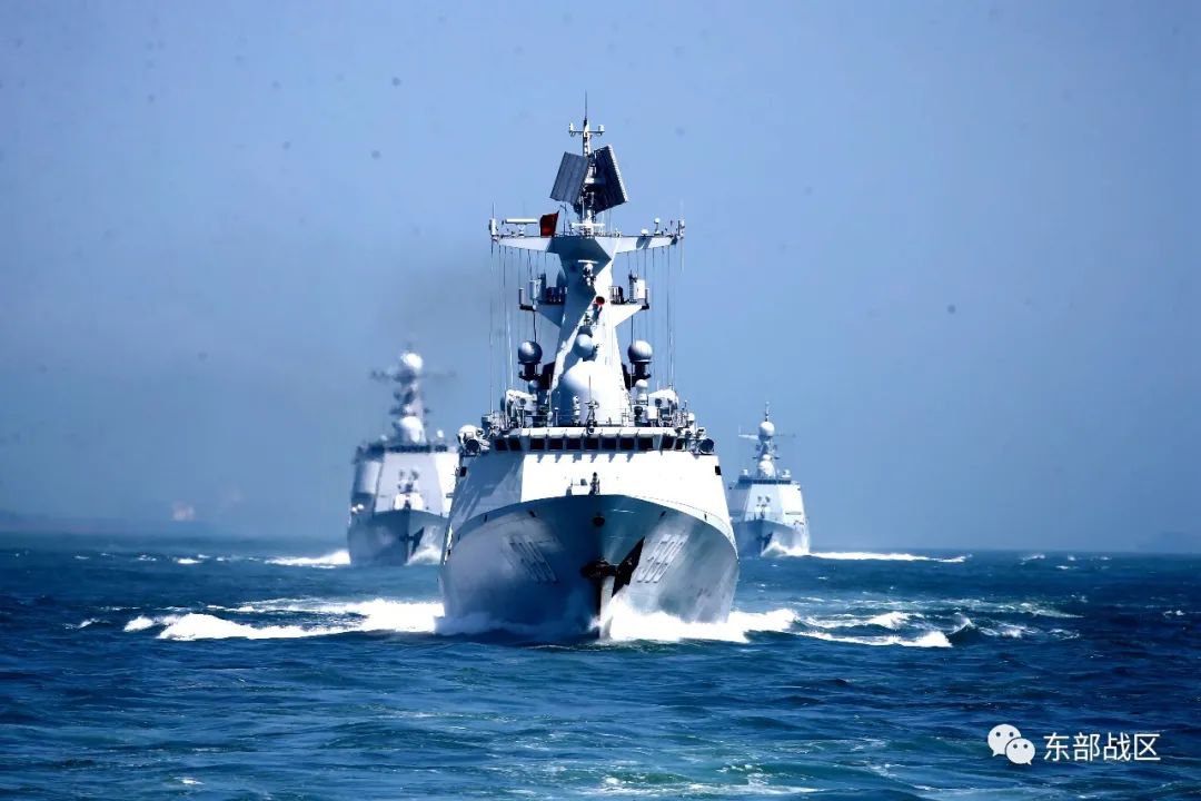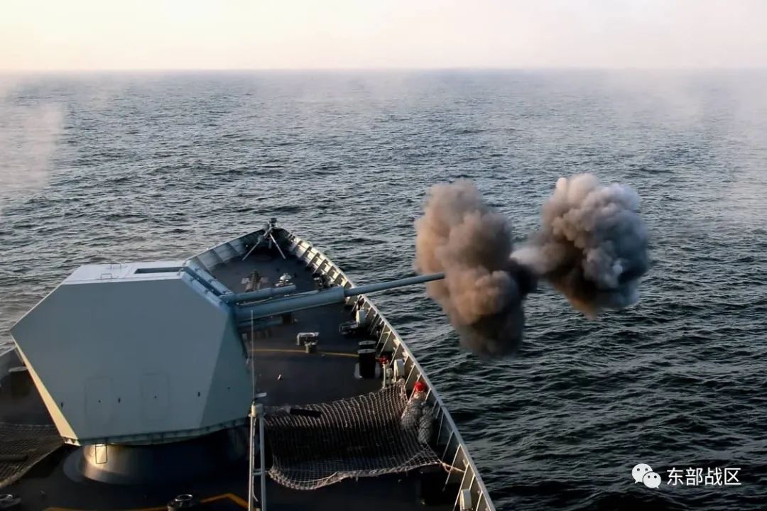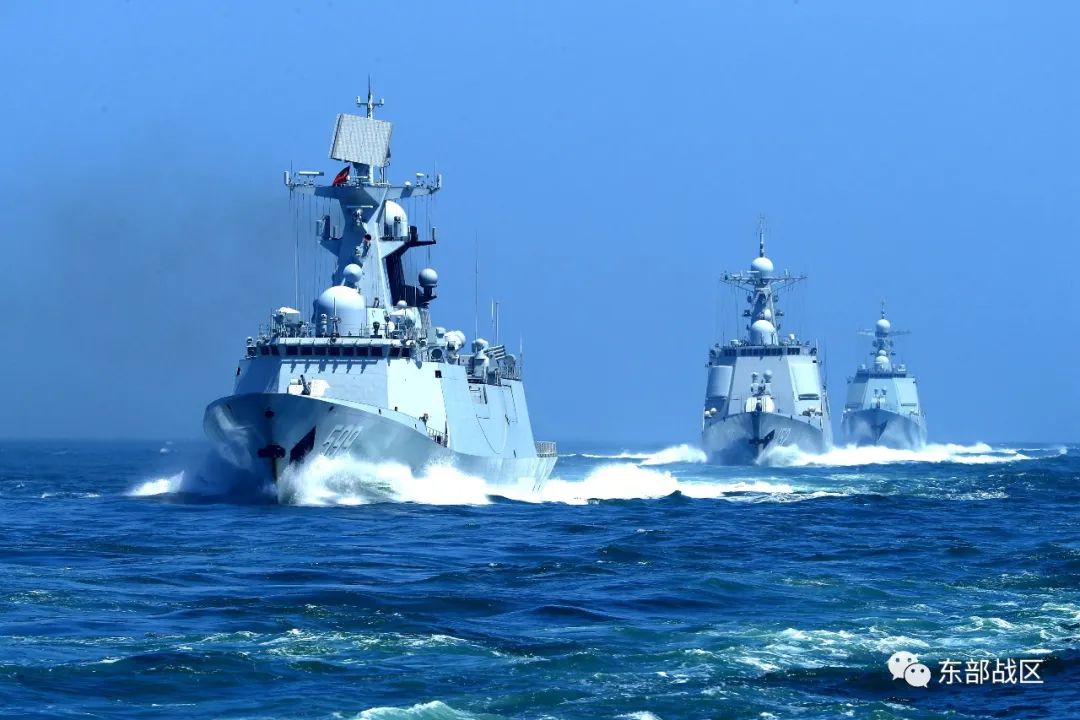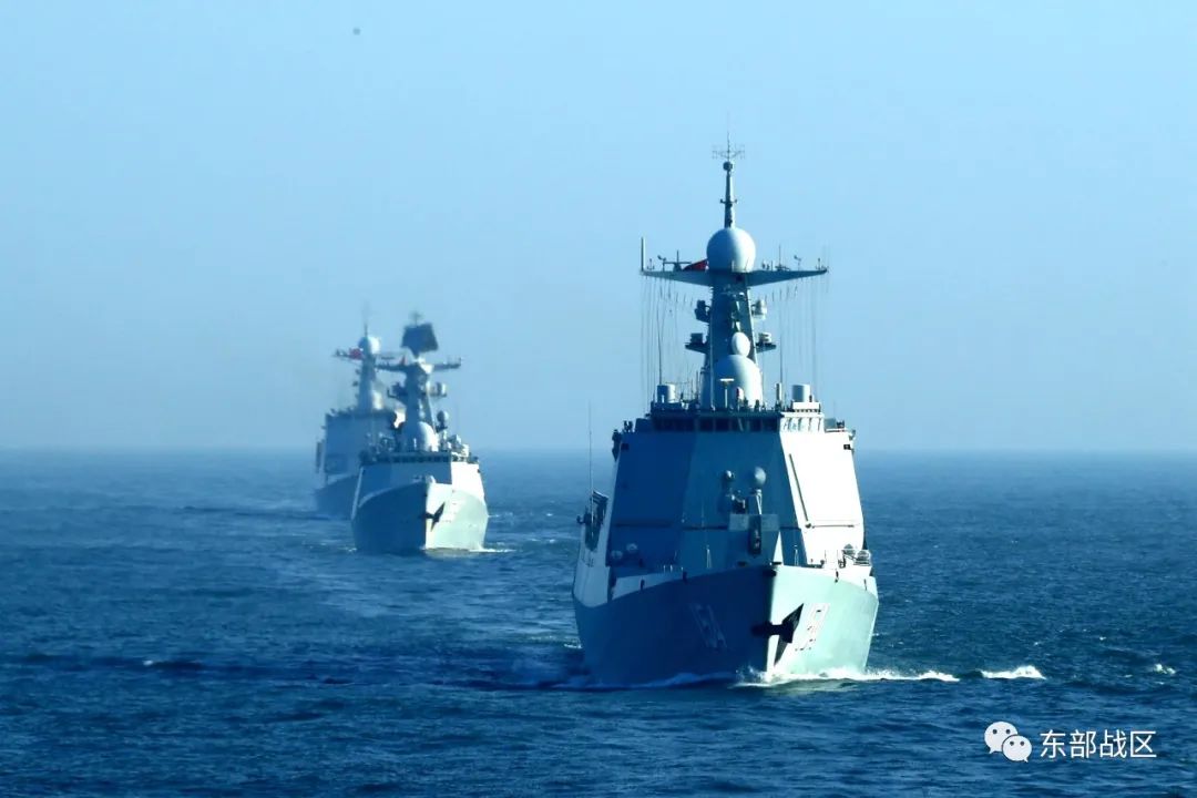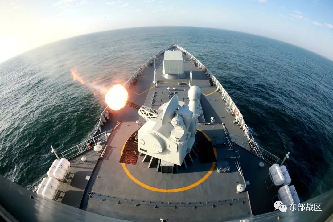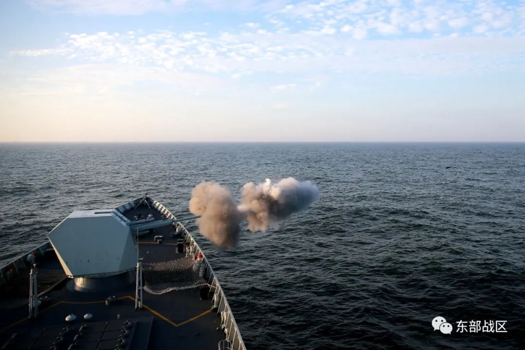 近日,东部战区海军淄博舰训练编队迎风顶浪,奔赴某海域开展联合火力打击演练。