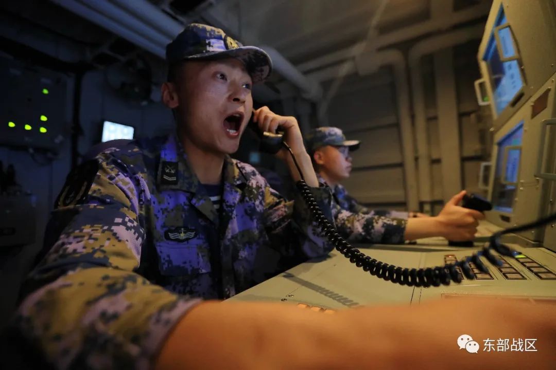 “5、4、3、2、1……发射!”当两条弧形边缘线均覆盖目标之际,两个作战编组相继发起奇袭,目标直指“敌”舰艇……紧接着,淄博舰通过指挥信息系统引导快艇编队全速撤收。