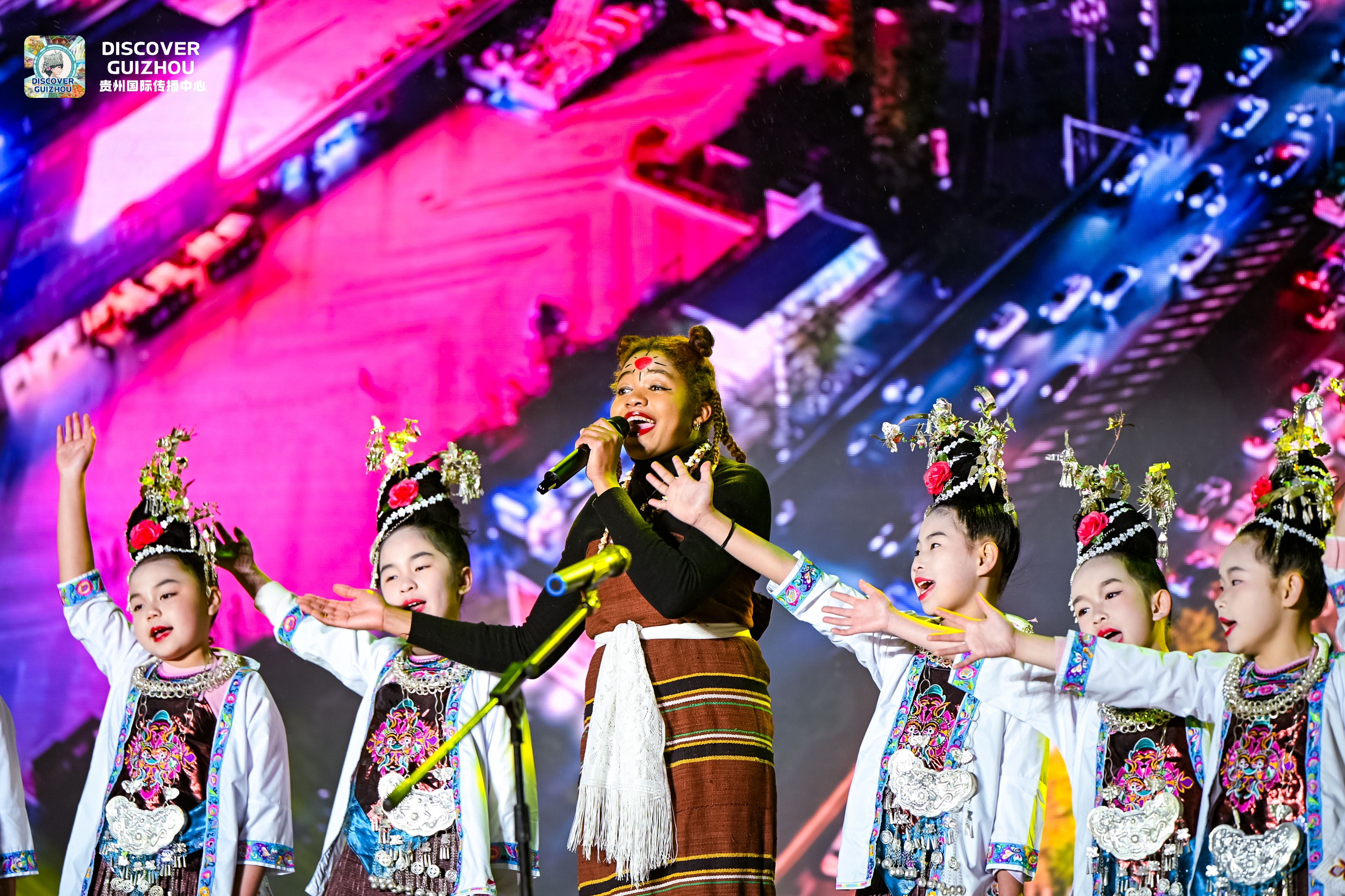 夜樱摇曳,马达加斯加留学生简瑶身着非洲传统服饰与侗族姑娘跨国合唱起一曲《我在贵州等你》,非洲的热情奔放与侗族的清丽婉转共同演绎出一曲跨越山海的动人乐章。“我在贵州快五年了,贵州的美丽,贵州人的热情都让我想推荐贵州,让更多外国朋友来到贵州。”简瑶说。