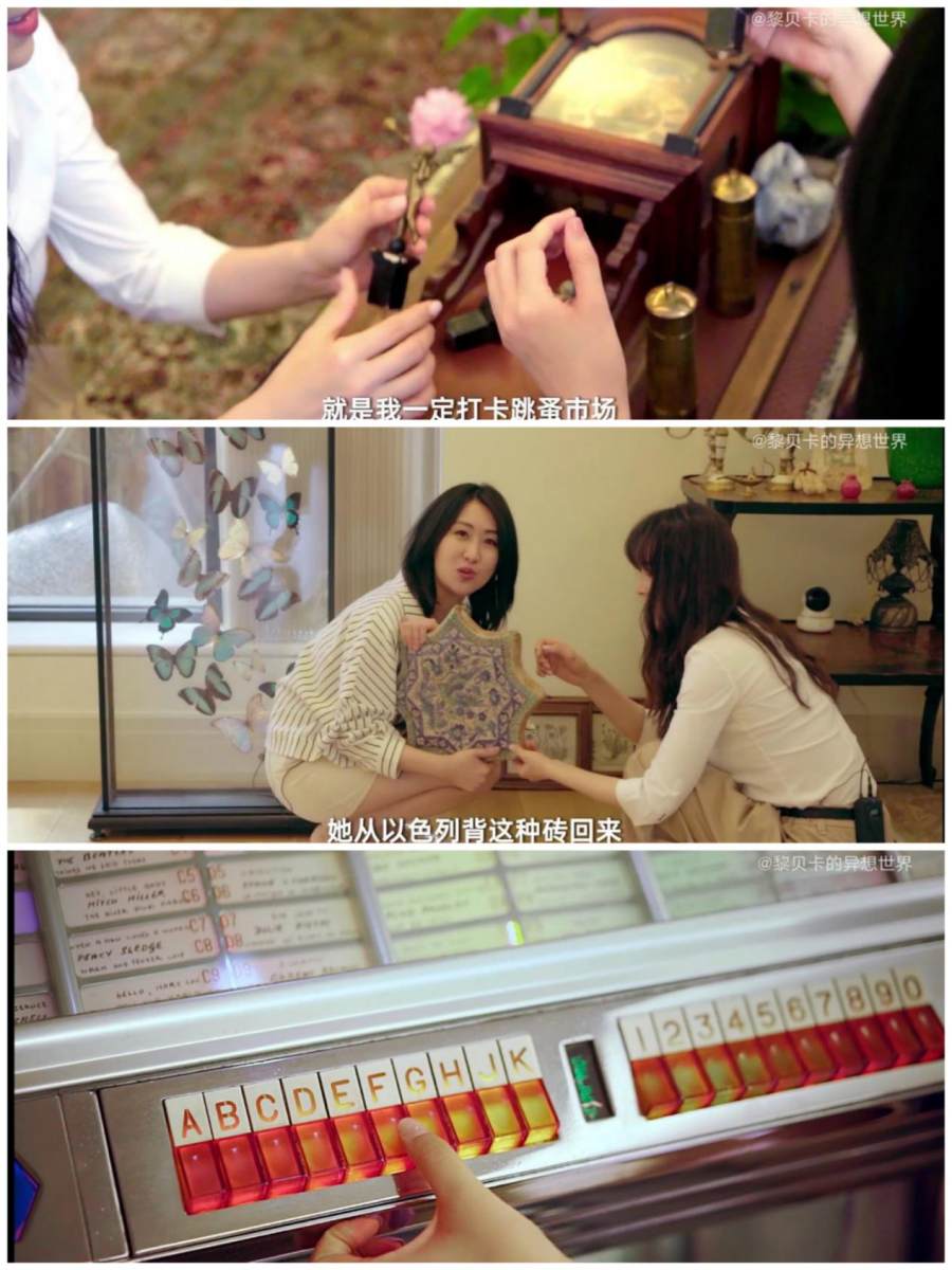 张静初的家,最令人印象深刻的是,家具几乎都是她从世界各地淘回来的。大到餐桌橱柜,小到水壶和调料罐,几乎每拿起一个,她就能说出一段故事和回忆。从张静初的家可以看出,她非常喜欢老物件,曾把一块超重的砖从以色列带回家,家里的地毯有几十年的历史,墙上的装饰是敦煌淘的老唐卡,而她家的传家宝是一台从美国淘回来的老式点唱机。就连觉得自己很爱折腾的黎贝卡,在听完张静初讲述整个家的打造过程后都表示甘拜下风!