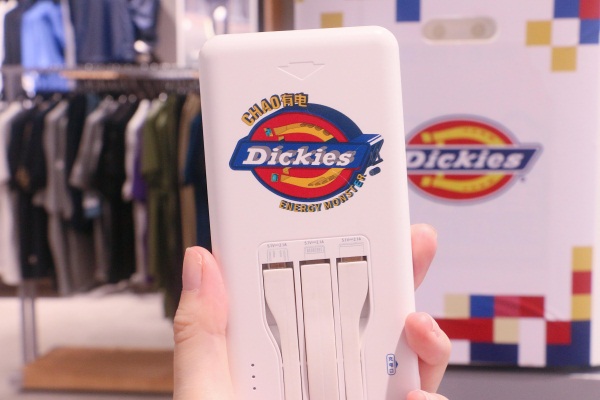 据了解,本次入驻的所有柜机都配有双方联名推出的定制宝,与门店整体品牌风格相呼应。定制宝融合了怪兽充电三线合一、方便手握的人性化机身设计及Dickies品牌潮流元素。简约的白色机身点缀上集合Dickies品牌原色的撞色色块,整个产品色彩灵动,潮流感十足。时尚设计搭载便捷充电服务,怪兽充电与Dickies的联名定制宝成为了门店柜台又一代表性潮流单品。