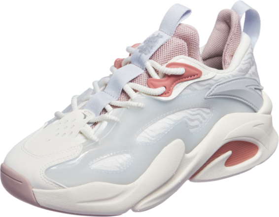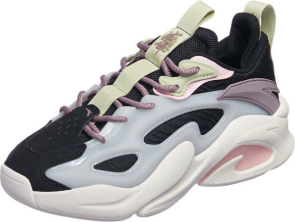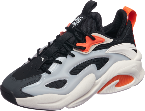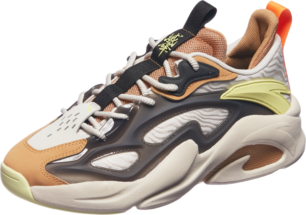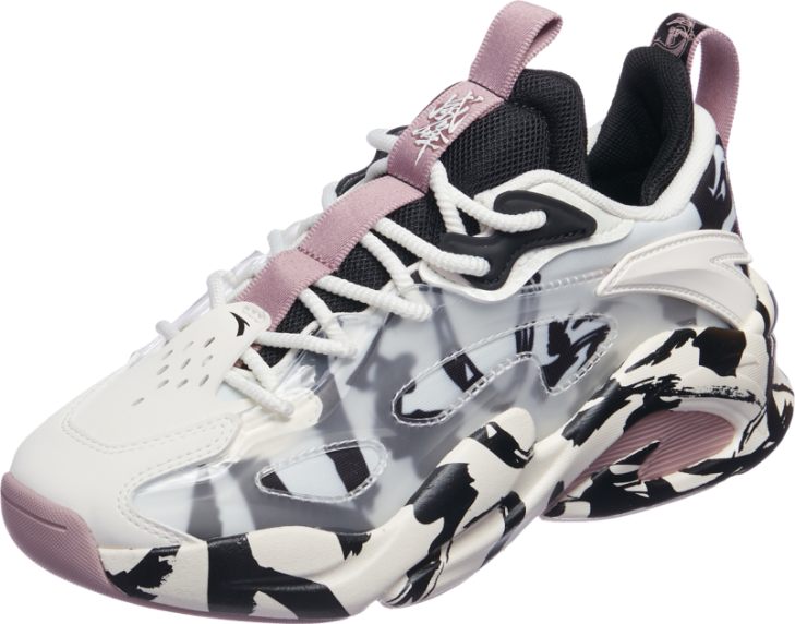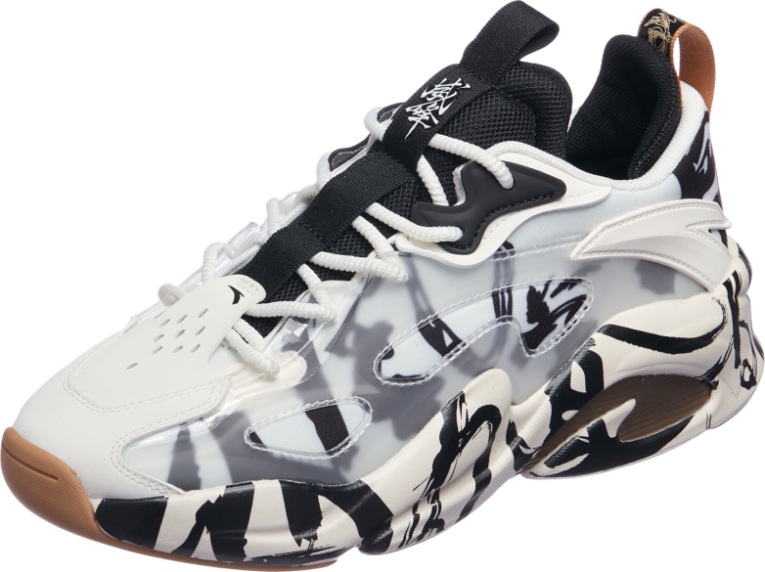 除配色外,霸道威峰采用了复古篮球大底,其灵感源自中国水墨画山峰线条,凹凸大底展现复古潮流;鞋面使用立体肌理网布,提升舒适感;帮面采用全新立体TPU结构,附着在鞋子侧面,流畅的线条配合安踏品牌LOGO顺势向前延展,包裹鞋身,提升质感。值得一提的是,其中主打配色恣肆的拂尘书法笔触,与半透明立体TPU结合,似有若无中彰显了“霸道出圈”的气势和态度。