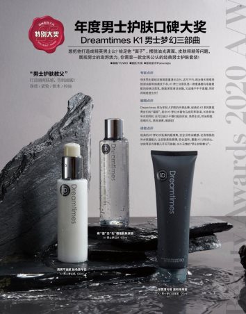 (Dreamtimes K1男士梦幻三部曲荣获瑞丽美容大赏年度男士护肤口碑大奖)