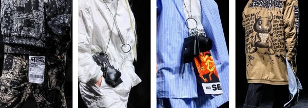 本次展现在众人面前的,是将古人天马行空般的想象力,与现代时装概念相结合。用精湛细腻的多元工艺丰富着马克华菲的设计语言,通过一些传统且经典的刺绣、扎染、勾花、重工水洗、光胶印、数码印花等极具代表性的工艺手法,将此次山海经通过成衣在秀场上重新演绎。