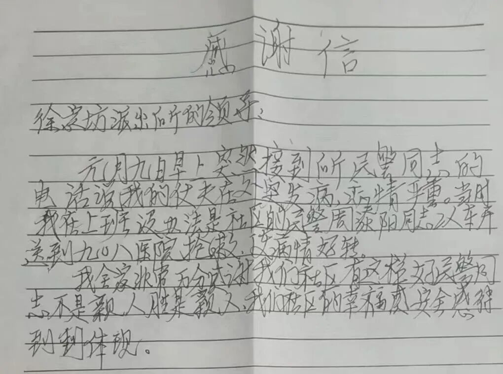 收到一封来自辖区老人的手写感谢信