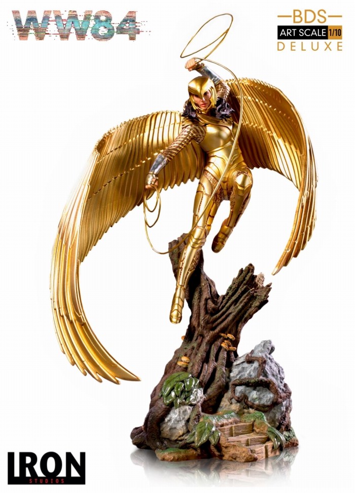 《神奇女侠1984》中戴安娜将身披金鹰战甲登场,这款金光闪闪的战衣早在剧照曝光时就吸引了不少影迷的眼球,近日Iron studios打造的金鹰战甲版神奇女侠手办公布。