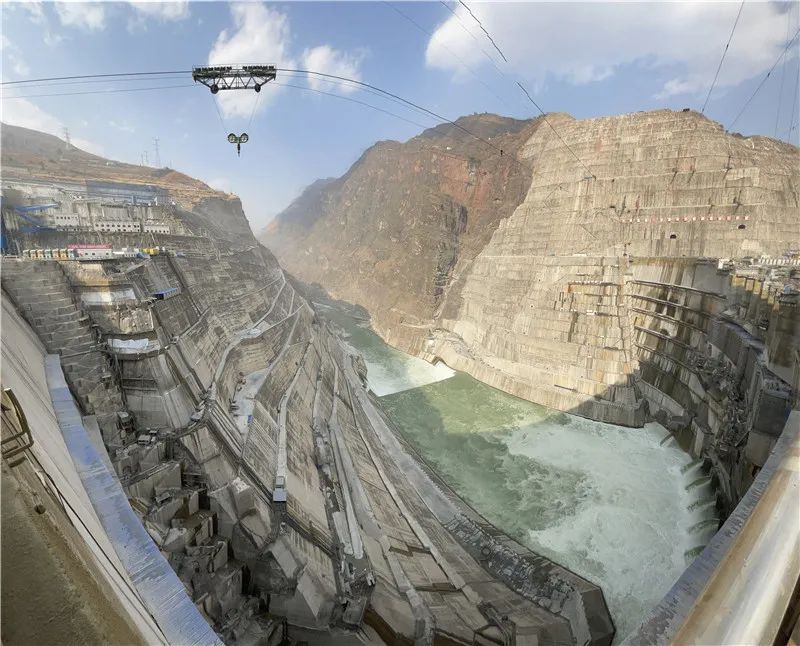 设计者们想出了一个特别的办法,就是在两山之间建立钢架,拉起绳索,将混凝土搅拌车从空中运到相应的作业区。同时为了防止水泥硬化,混凝土搅拌车在空中还必须要不停地搅拌才行。当然了,还有其他的黑科技。比如在大坝坝体内埋设上万支监测仪器,建造运行全周期精细化管控。
