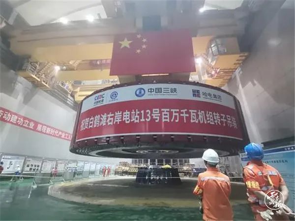 △白鹤滩右岸(云南侧)电站13号机组转子成功吊入 张冬梅 摄