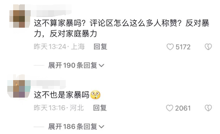 视频发布后引发网友讨论,有网友表示“凡事还是要冷静”,也有网友认为“这不算家暴吗,评论区怎么这么多人称赞?”“打人就是不对啊,无论男女”。