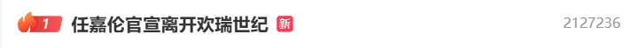 随后,微博话题#任嘉伦官宣离开欢瑞世纪#冲上热搜第一。