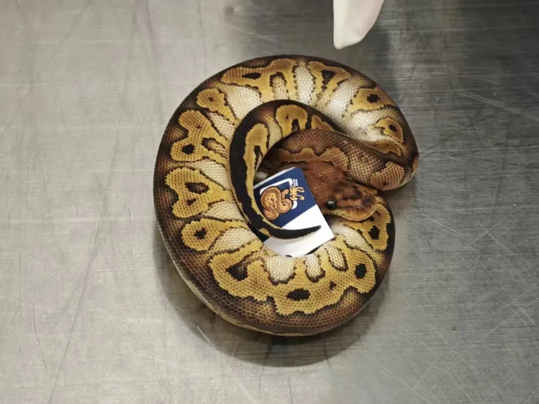 当日,皇岗海关关员在福田口岸对进境旅客及其行李物品进行监管时,发现1名身着黑色波点上衣的女性旅客神色慌张、步履匆忙,随即对其进行拦截检查。经进一步检查,在其上身内衣中查获用棉袜包裹的活体蛇2条。随后,关员又连续从另外3名女性旅客身上查获用相同手法藏匿的活体蛇各2条。经询问,4名旅客自述是受他人委托携带上述活体蛇进境,并收取“带工费”。后经深圳海关动植物检验检疫技术中心鉴定,上述8条活体蛇均为球蟒,被列入《濒危野生动植物种国际贸易公约》(CITES)附录Ⅱ。