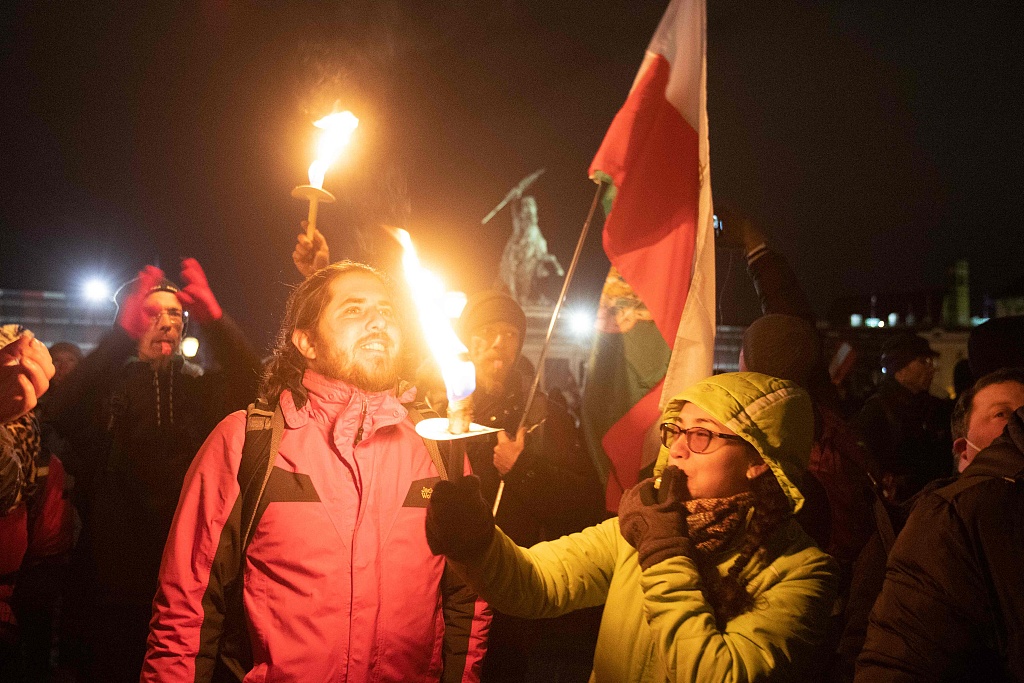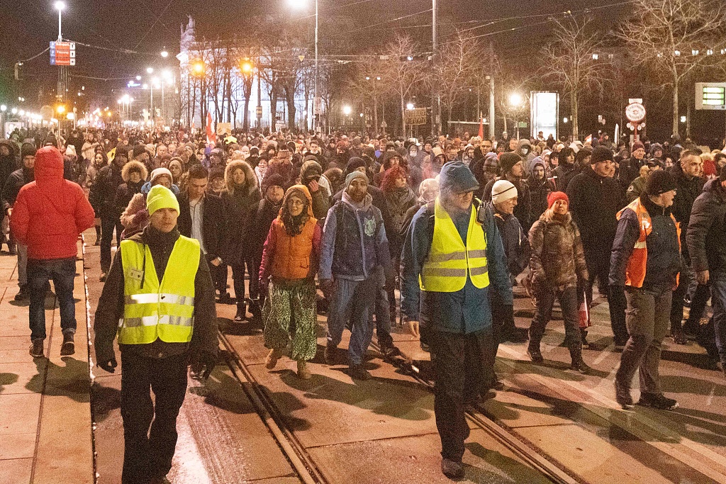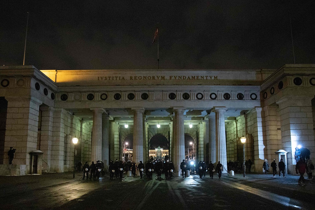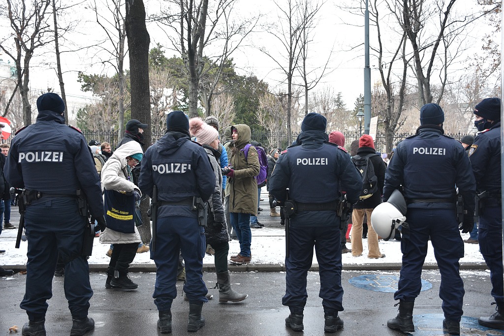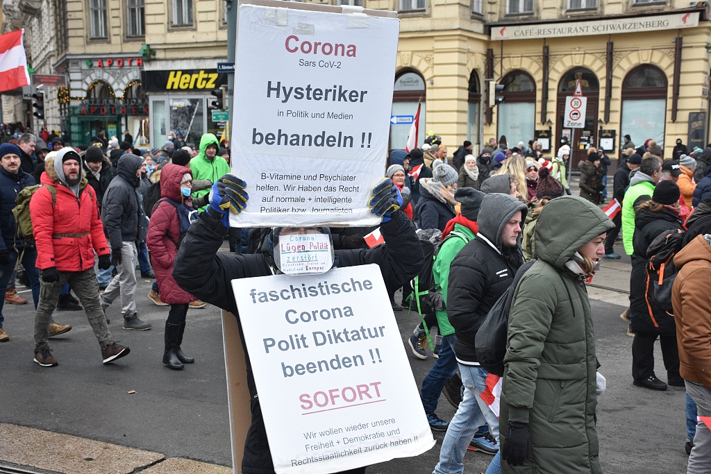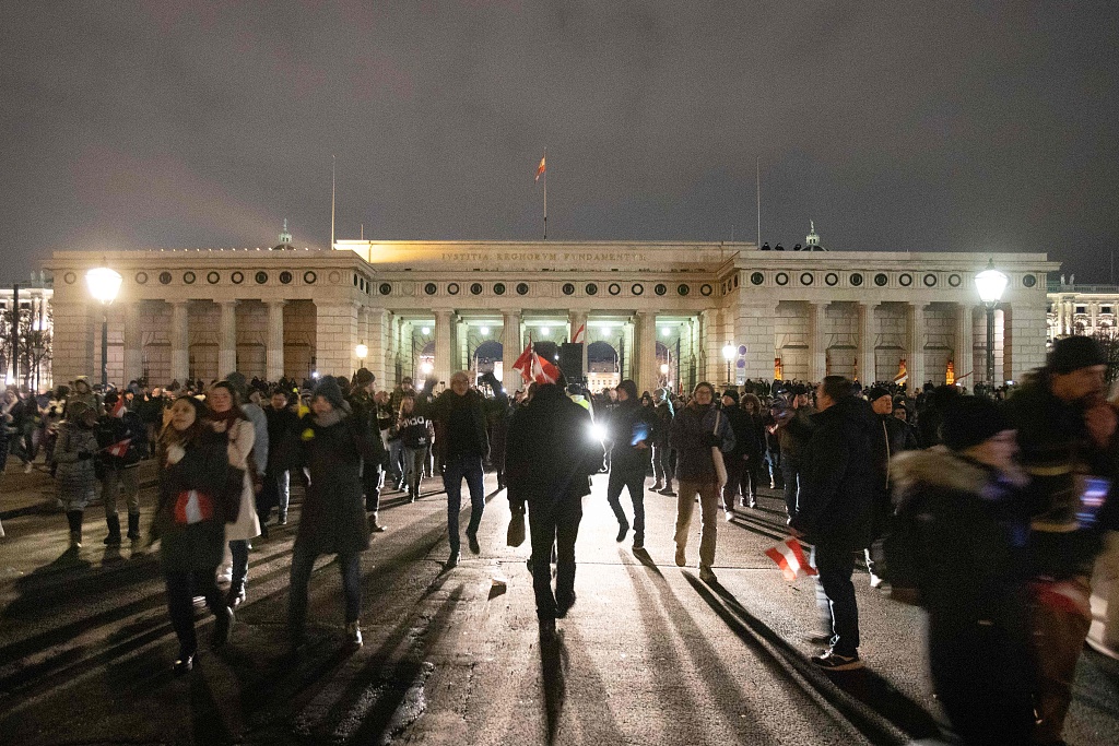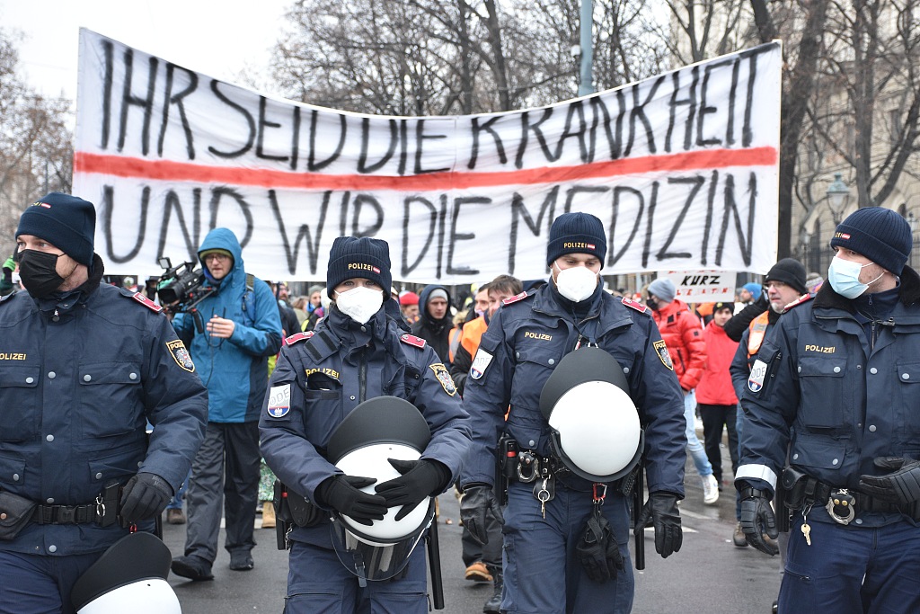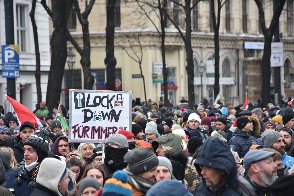 奥地利爆发反封锁措施抗议 人群密密麻麻大多不戴口罩