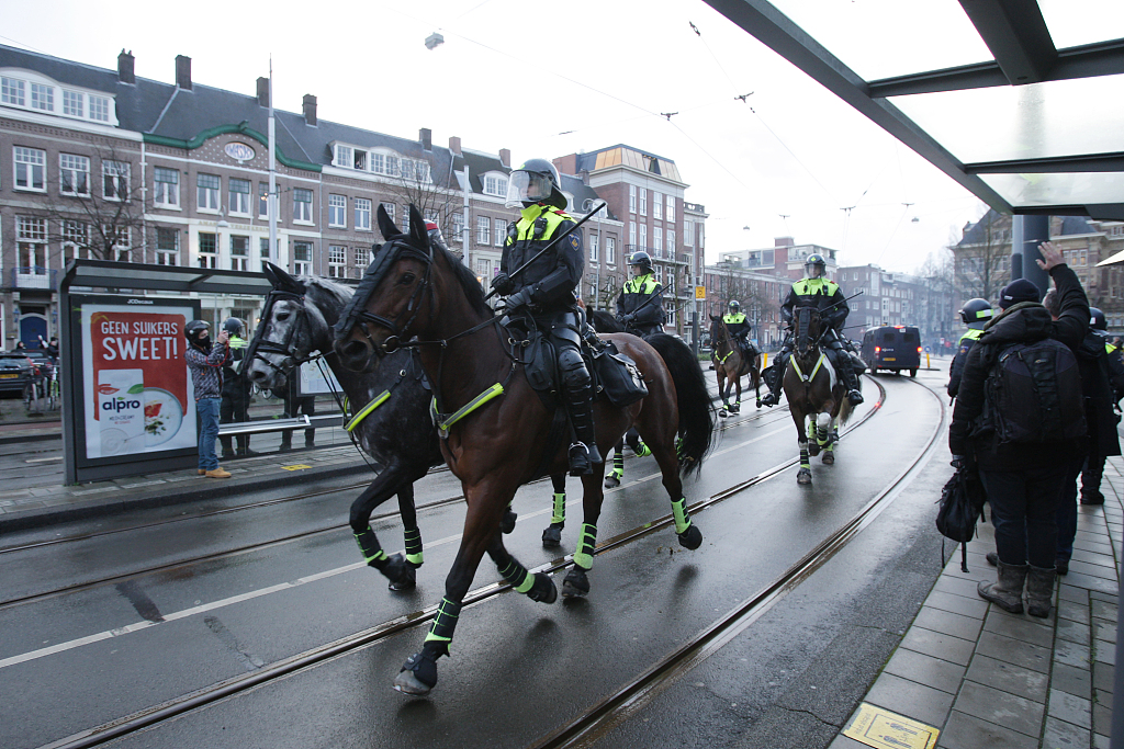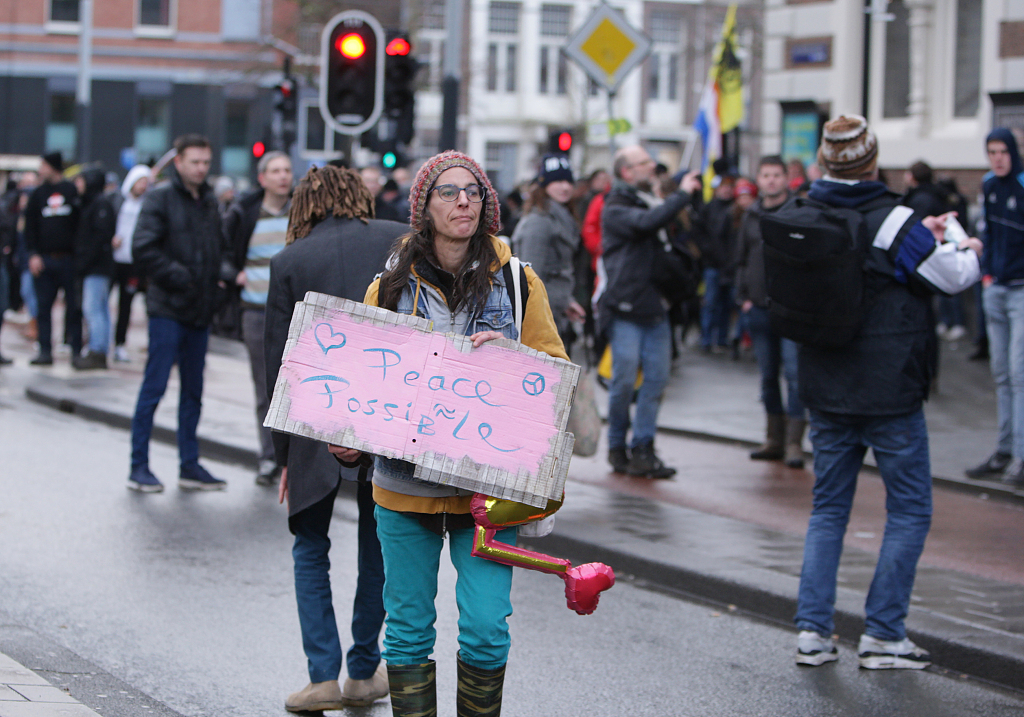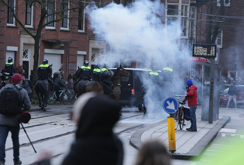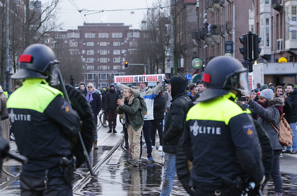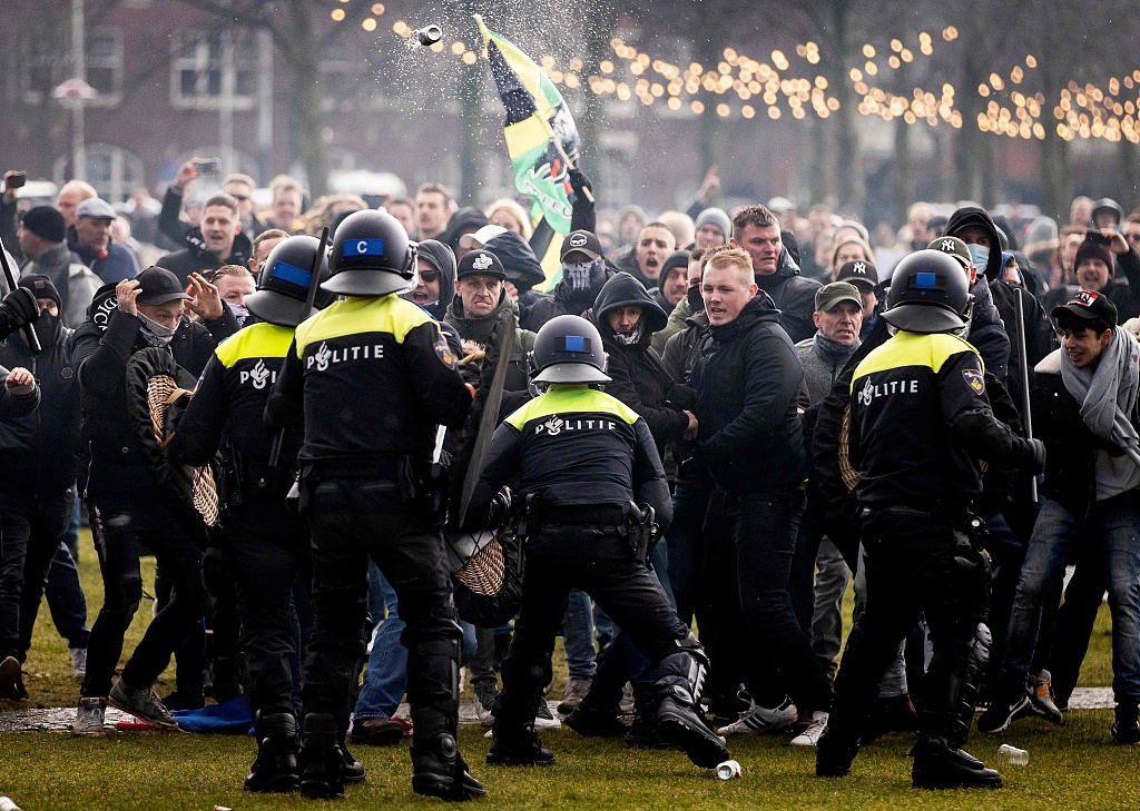 荷兰首都两千人抗议疫情封锁 警察动用高压水枪驱散人群