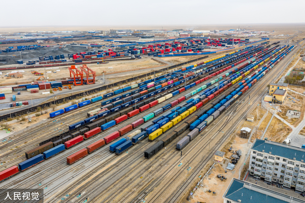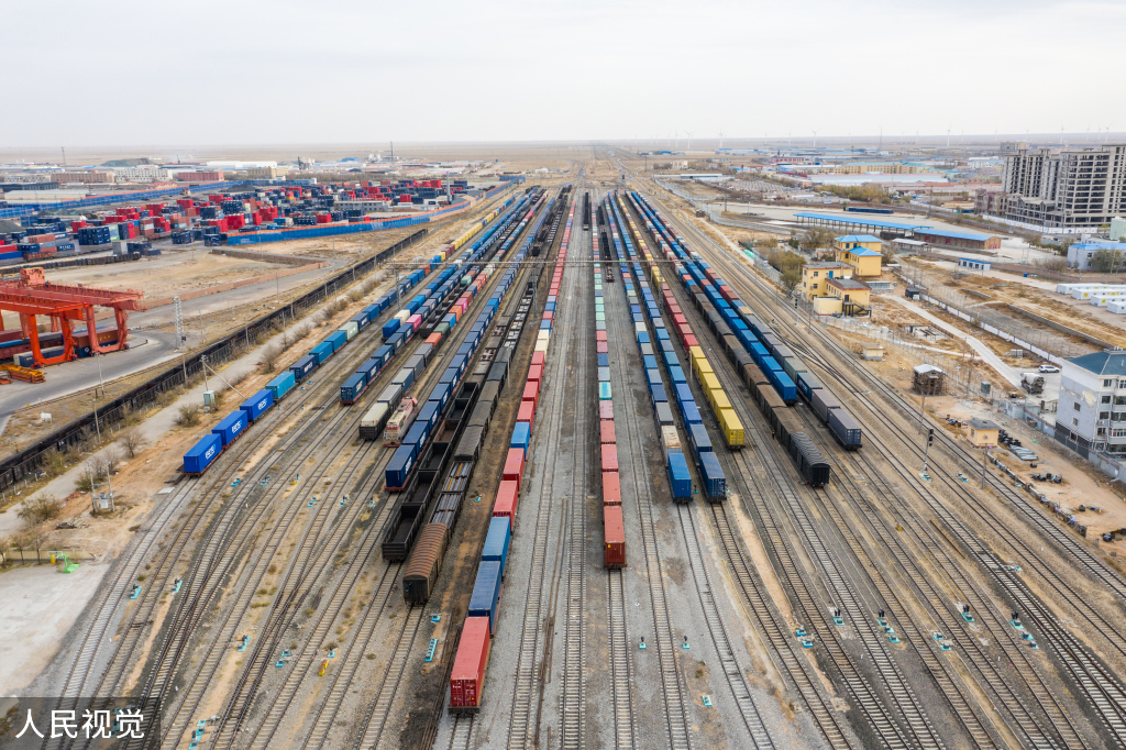 截至2022年10月25日,内蒙古出入境边防检查总站二连出入境边防检查站今年检查验放中欧班列突破2000列。二连浩特口岸是中蒙最大陆路口岸,国家“一带一路”建设和“中蒙俄经济走廊”上的重要节点城市,中欧班列中线通道唯一出入境口岸。为保障中欧班列高效快速通关,该站推出中欧班列优先查验、车体检查信息化等通关举措,为班列提供“全时段、全天候、零等待”通关服务,助力中欧班列跑出加速度。郭鹏杰/人民视觉