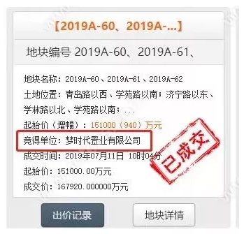 7月11日,梦时代置业有限公司通过网拍成功竞得三宗地块,共计174791.3平方米(约262亩),成交价167920万元。其中一地块后期将建设为日照银座梦时代购物中心项目。