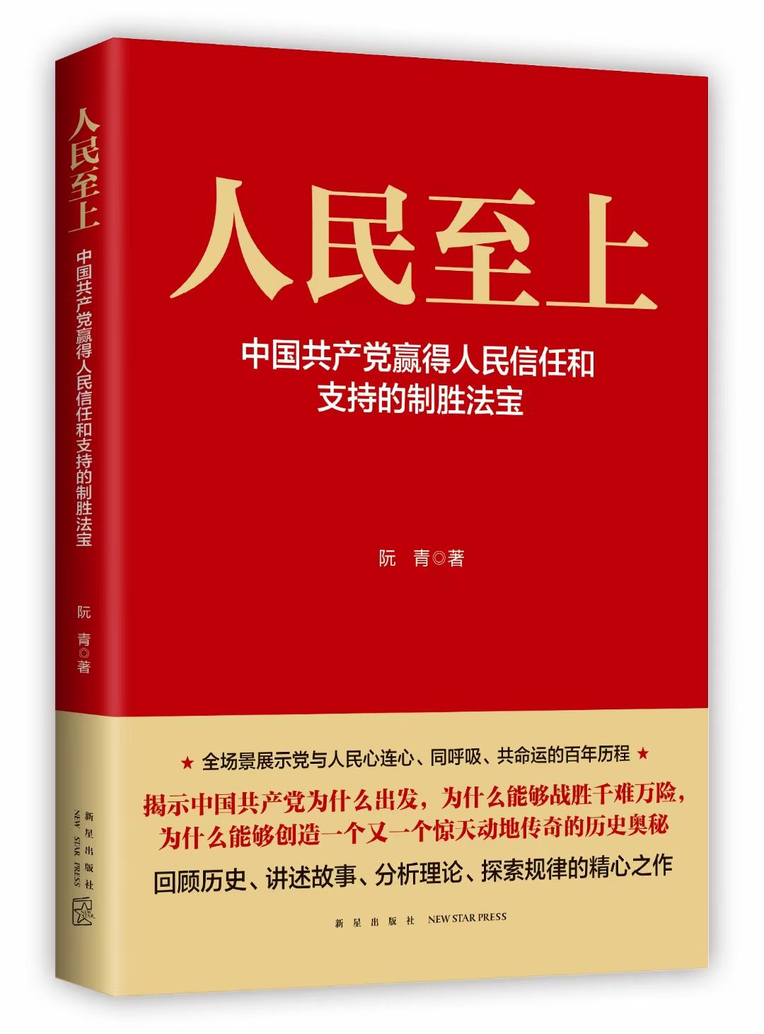 习近平总书记在党史学习教育动员大会上的讲话中指出,赢得人民信任,得到人民支持,党就能够克服任何困难,就能够无往而不胜。中共中央党校(国家行政学院)阮青教授撰写的《人民至上——中国共产党赢得人民信任和支持的制胜法宝》一书,由新星出版社出版,是深入学习贯彻习近平总书记重要讲话精神的理论之作。