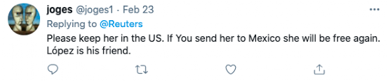 “请让她待在美国。如果把她遣送回墨西哥,她将重获自由,因为安德烈斯是他的朋友。”