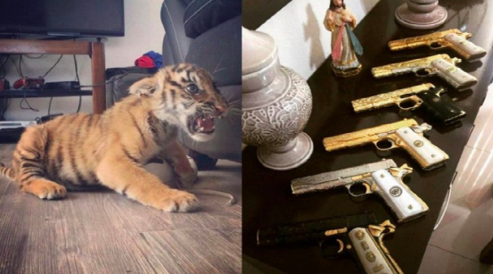 2014年,警方突袭墨西哥度假圣地马萨兰的一处海边旅馆时,搜到了3亿美金以及数不清的珠宝,海边旅馆的花园里还养着白虎和花豹。