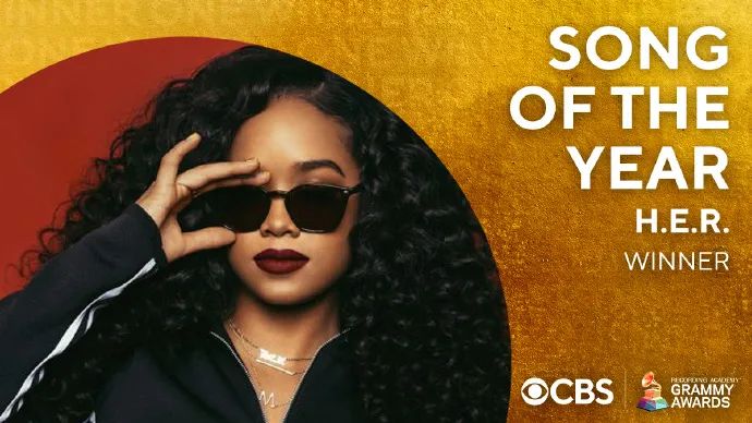 今年的年度最佳歌曲是来自H.E.R.热单《I CAN'T BREATHE》,值得一提的是,这首歌是纪念2020年遭警察用腿压颈8分钟后死亡的非裔美国人乔治·弗洛伊德的。