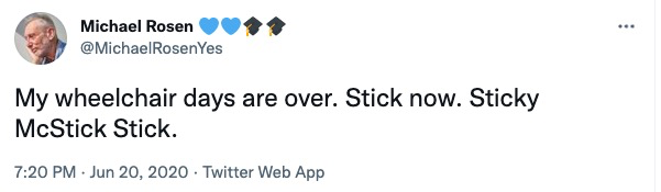 为了记录这段经历,Michael Rosen还专门写了一本童话书《Sticky McStickstick》。