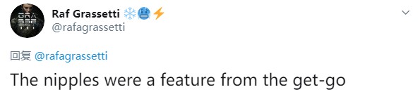 初版CG灰模阶段造型设计图的奎爷更加接近与希腊神话有关的经典设计。奎爷的胡子更加蓬松,角色看起来有些显老了。当然,初版的设计要通用一些,艺术总监Raf Grassetti指出,奎爷的乳头始终是角色设计的必备特征,这在之前的概念艺术中可以清楚地看到。