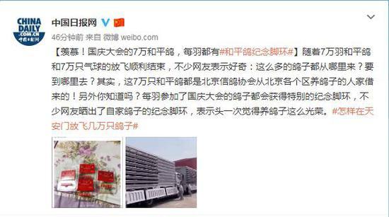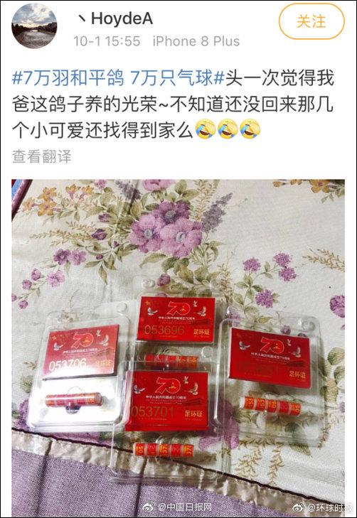 原标题:羡慕!国庆大会的7万和平鸽,每羽都有和平鸽纪念脚环