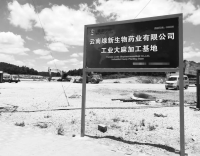 在沾益工业园区内,仅看到一块“云南绿新生物药业有限公司工业大麻加工基地”的牌子竖立在路边,牌后的空场地内堆放着一些建筑材料。建筑工地的负责人告诉记者,该建设项目5月底开工,工业大麻提纯工厂建设周期约为6个月。“目前还在平整场地,地勘设计还没有出来。”