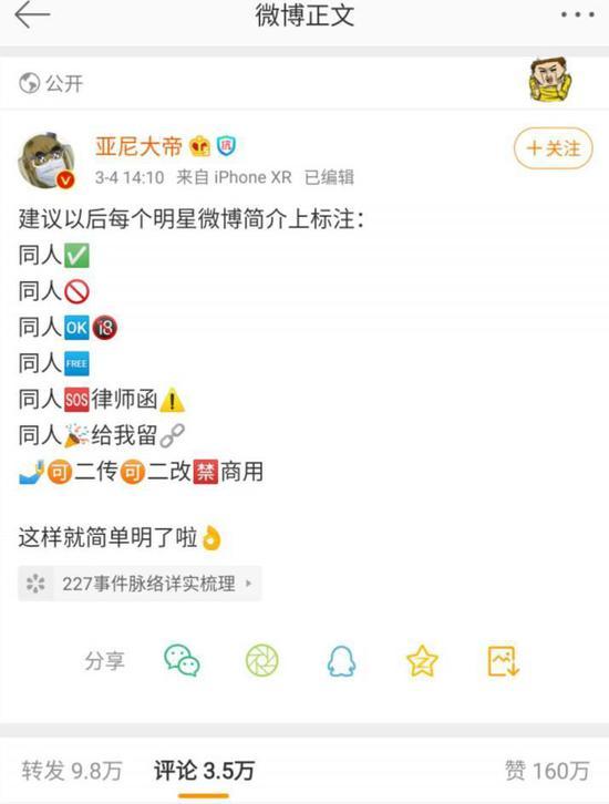 前两天,有位娱乐博主发布了一条微博,建议明星以后可以在微博简介上标注自己对于同人的接受程度,引发了网友的大量讨论。