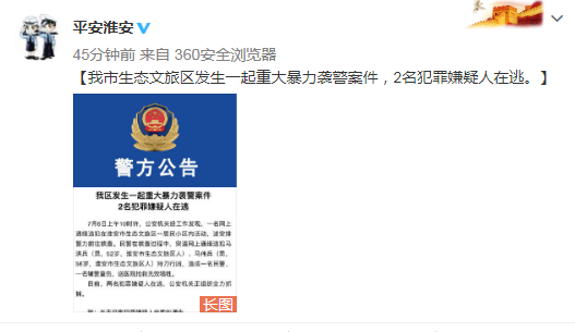 【我市生态文旅区发生一起重大暴力袭警案件,2名犯罪嫌疑人在逃。】