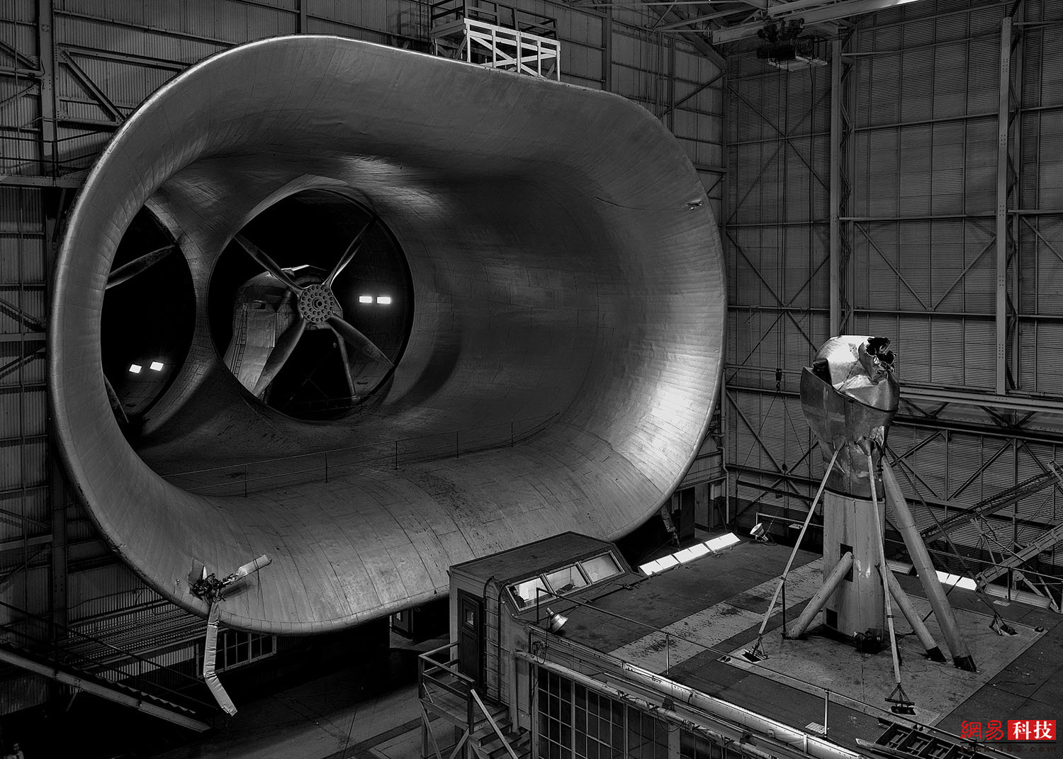 在艾姆斯研究中心的国家全尺寸空气动力学综合中心,24米X36米风洞驱动的风扇。