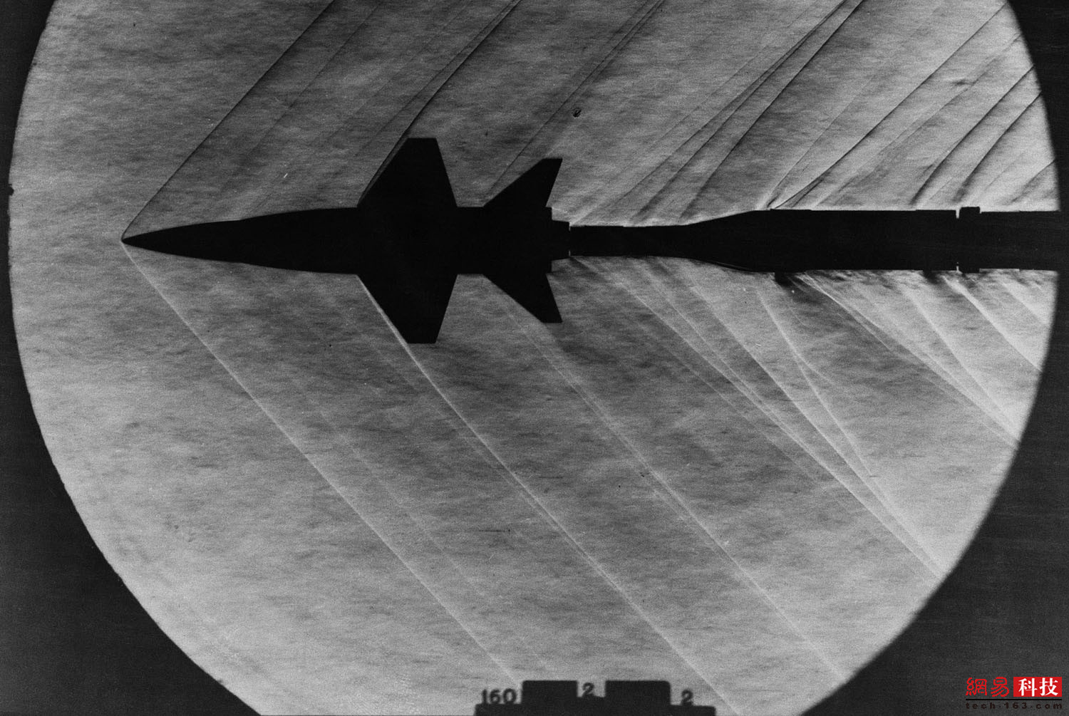 1962年3月23日,在国家跨音速风洞中,X-15模型应对冲击波测试。