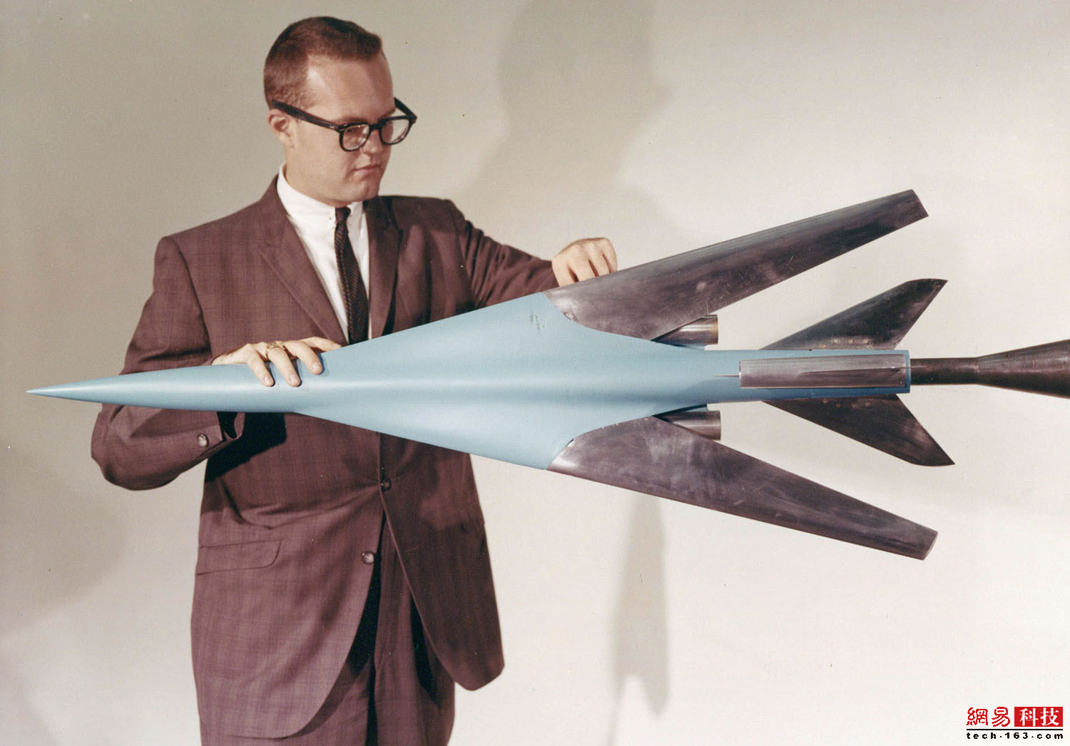 1962年,在2.1米X3米高速风洞中,Adv Arrow SST模型正接受测试。
