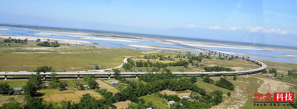 多拉-萨迪亚桥:印度阿萨姆邦的这座新建大桥在2017年5月27日投入使用,它是建造在雅鲁藏布江支流——察隅河上。虽然这座桥梁的结构非常简单,但是这个耗费1.55亿美元的项目仍然让工程师们奋战了5年多时间。这座桥梁的长度也是非常值得注意的,它的长度达到了5.69英里(约9.15千米),是印度最长的桥。虽然这座新建的桥梁带来了许多便利,但是也造成当地船夫的失业,他们再也无法借助渡船为人们提供渡河服务。