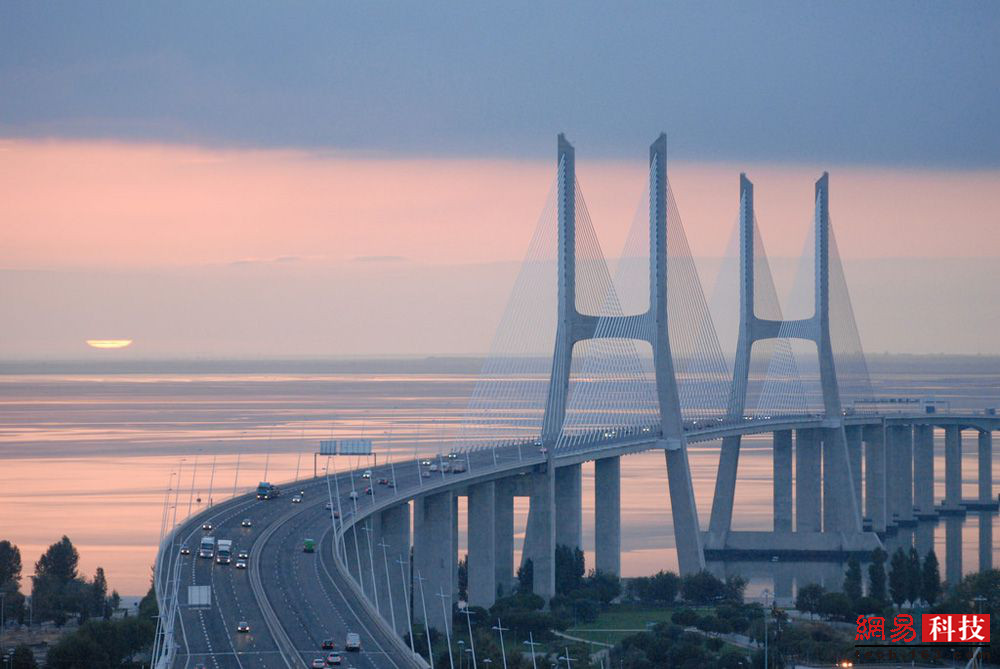 瓦斯科-达-伽马桥:位于葡萄牙里斯本的这座美丽桥梁是一座斜拉桥,如果算上两侧的高架桥,它可以说是欧洲最长的桥梁。它就建造在塔霍河上,是在1998年的里斯本展览会之前建成的,它也成为里斯本的全新标志性建筑。