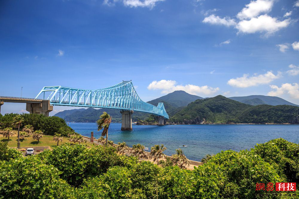 日本的Ikitsuki桥是世界最长的连续钢桁粱桥,长度超过1300英尺(约396米)。这座全钢铁结构的桥梁被喷涂成养眼的淡蓝色,它将风景迷人的Ikitsuku岛与相邻岛屿平户岛连接到一起。