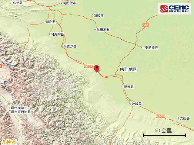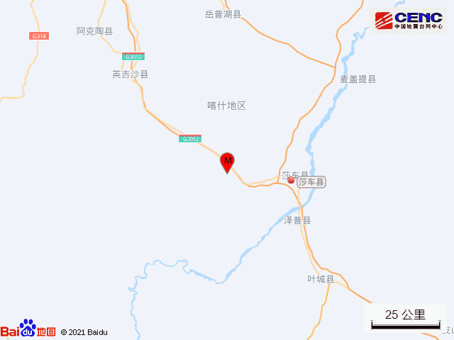 新疆喀什地区莎车县发生3.1级地震,震源深度20千米