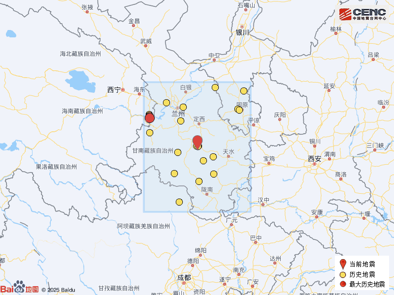 历史地震: 根据中国地震台网速报目录,震中周边200公里内近5年来发生3级以上地震共41次,最大地震是2023年12月18日在甘肃临夏州积石山县发生的6.2级地震(距离本次震中186公里),历史地震分布如图。