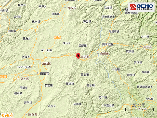 速报参数: 据中国地震台网正式测定,1月7日11时5分在云南曲靖市富源县发生3.4级地震,震源深度10公里,震中位于北纬25.65度,东经104.25度。