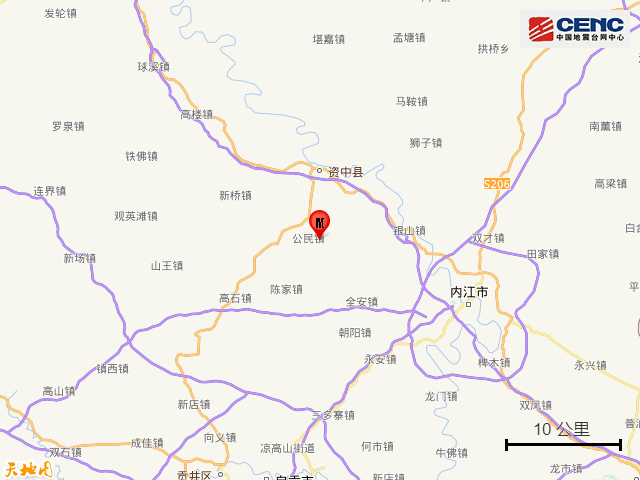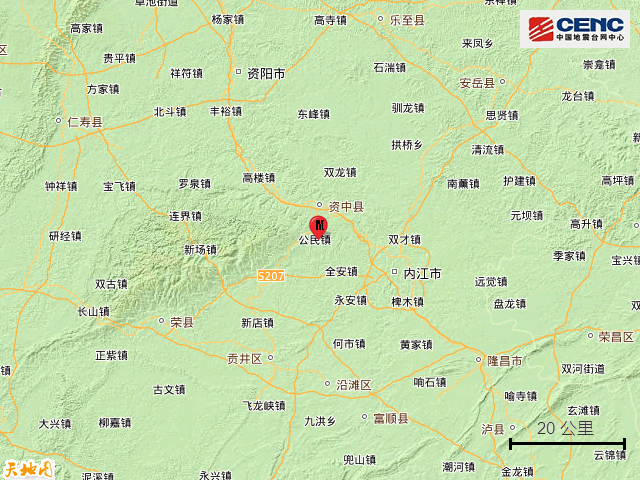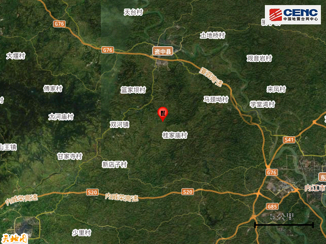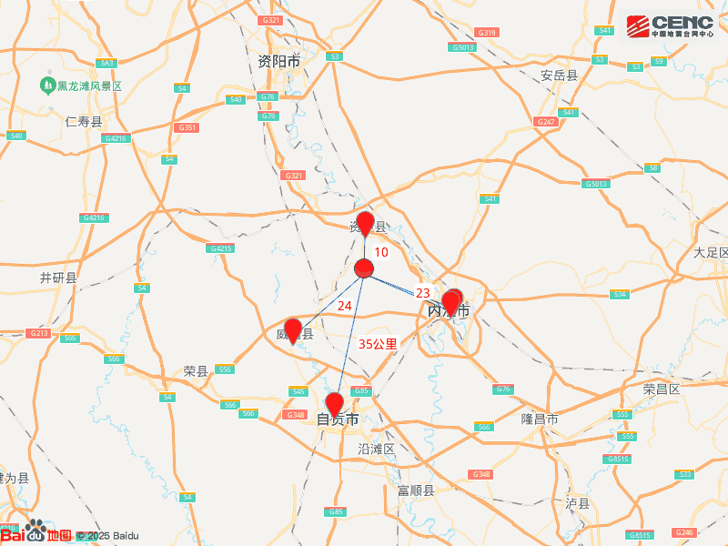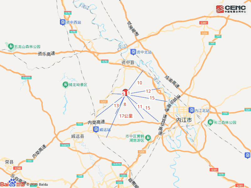 周边县城: 震中距资中县10公里、距东兴区23公里、距市中区23公里、距威远县24公里、距大安区35公里,距内江市22公里,距成都市132公里。