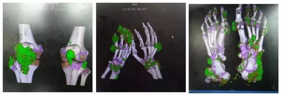 风湿免疫科医生检查后发现,他全身关节几乎都长满了“石头”,而这些结晶正是痛风石 。