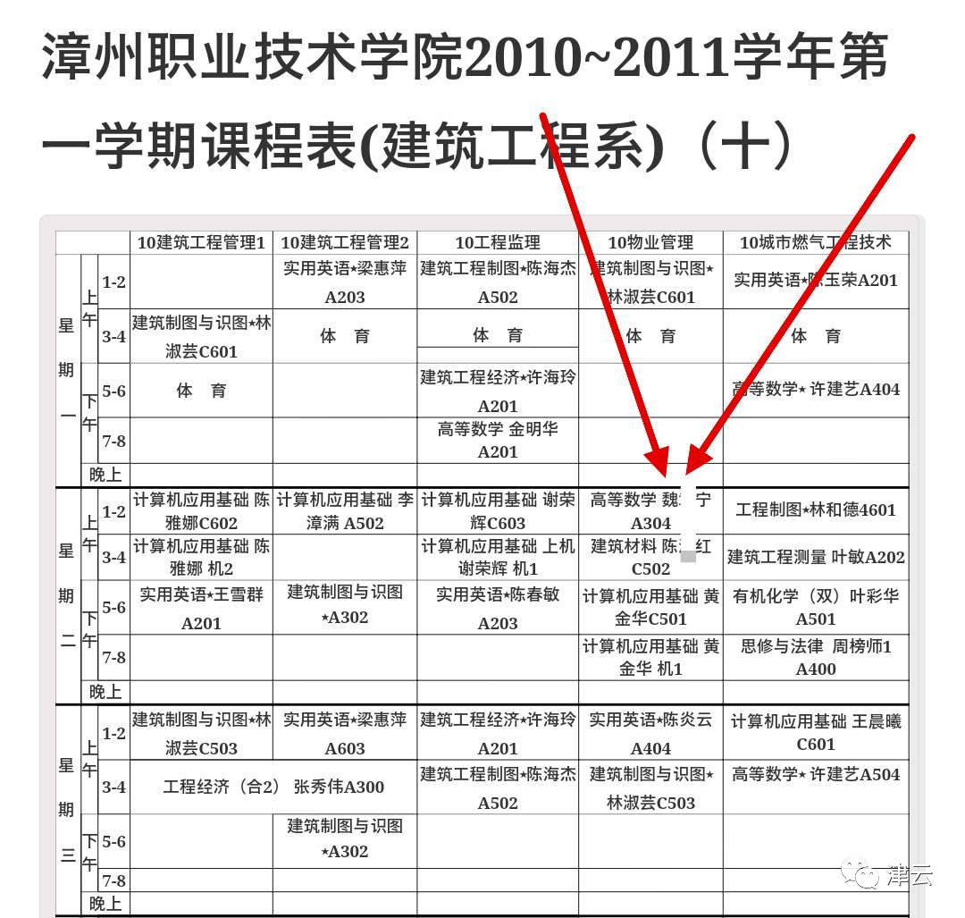 津云记者发现,漳州职业技术学院2007——2008学年第一学期课程表显示,魏某宁当时是该校基础教学部数学教研室的老师,所教课程是数学。津云记者在网络上再次搜到一份漳州职业技术学院(建筑工程系)2010——2011学年第一学期课程表,显示魏某宁所教课程是高等数学。